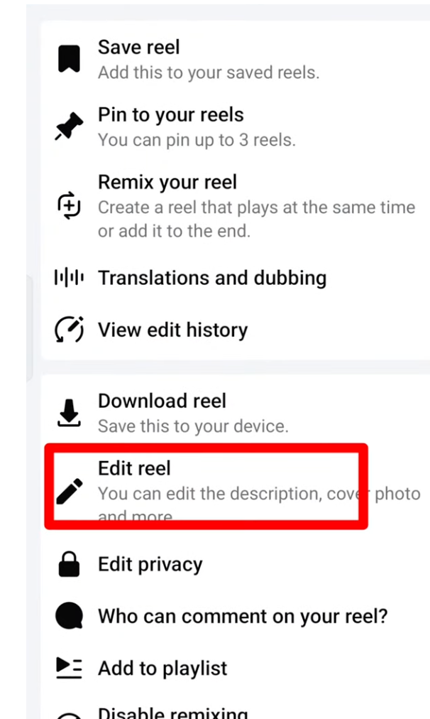Facebook now allows limited edits to Reels after they’re published. While the video itself stays fixed, you can update certain details through the “Edit Reel” option.