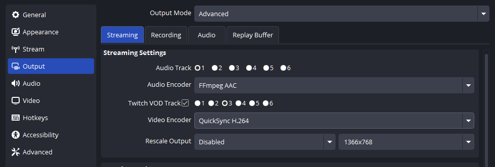 3. Next, go to Settings > Output > Streaming.