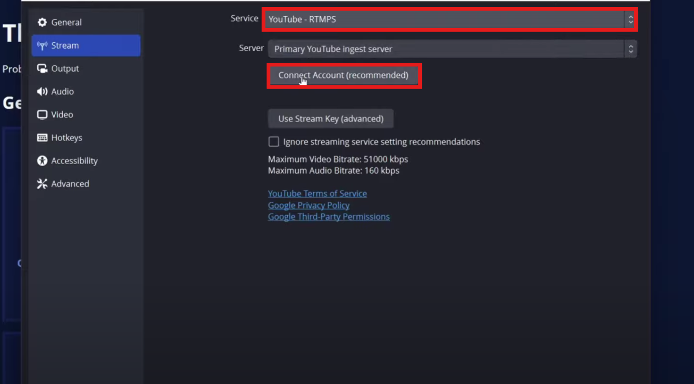 - Find your Primary Stream Key and make sure it matches OBS.