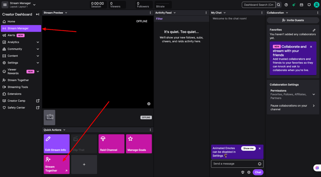 The second option to initiate a call on Twitch is the Collaboration panel in your Stream Manager.
