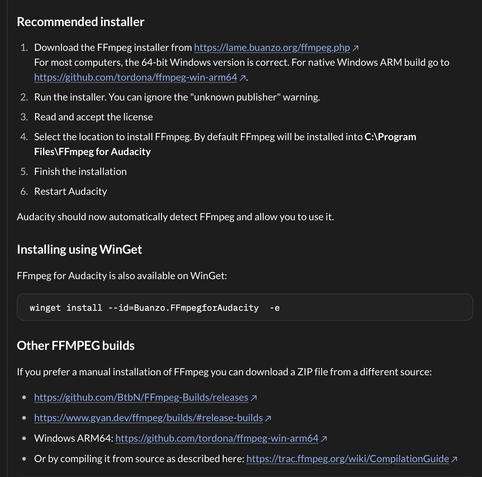 Step 5: Copy your wav file to the path shown in the command prompt. Copy your FFMPEG command, for example: