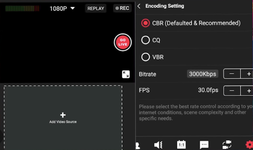 - Adjust bitrate, resolution, and settings.