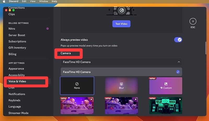 Step 4: Go to the “Voice & Video” tab.