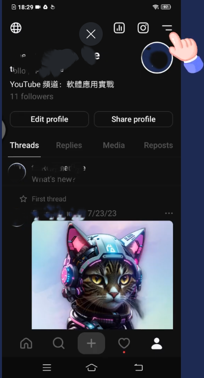 Step 1: Access the account screen for your threads. Open the Threads app on your smartphone, tap your profile in the bottom-right corner.