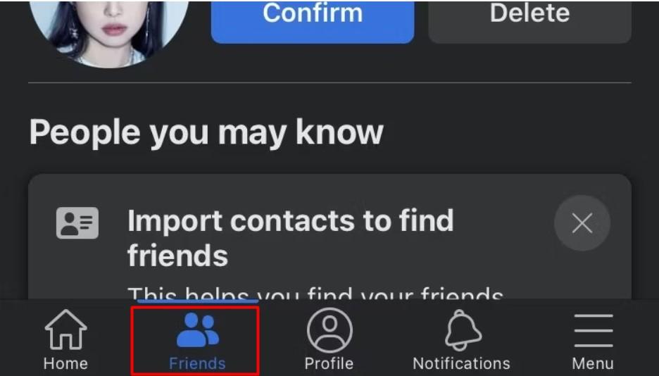 This shortcut offers a quick way to view friend requests and all suggested friends you can add. When you click on it, you may see suggestions on importing your contacts.