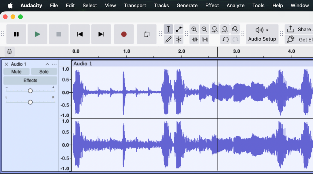 - Move the Cursor to the End: Press the Skip to End button on the transport toolbar (or press K on your keyboard) to ensure your cursor is at the exact end of the audio.