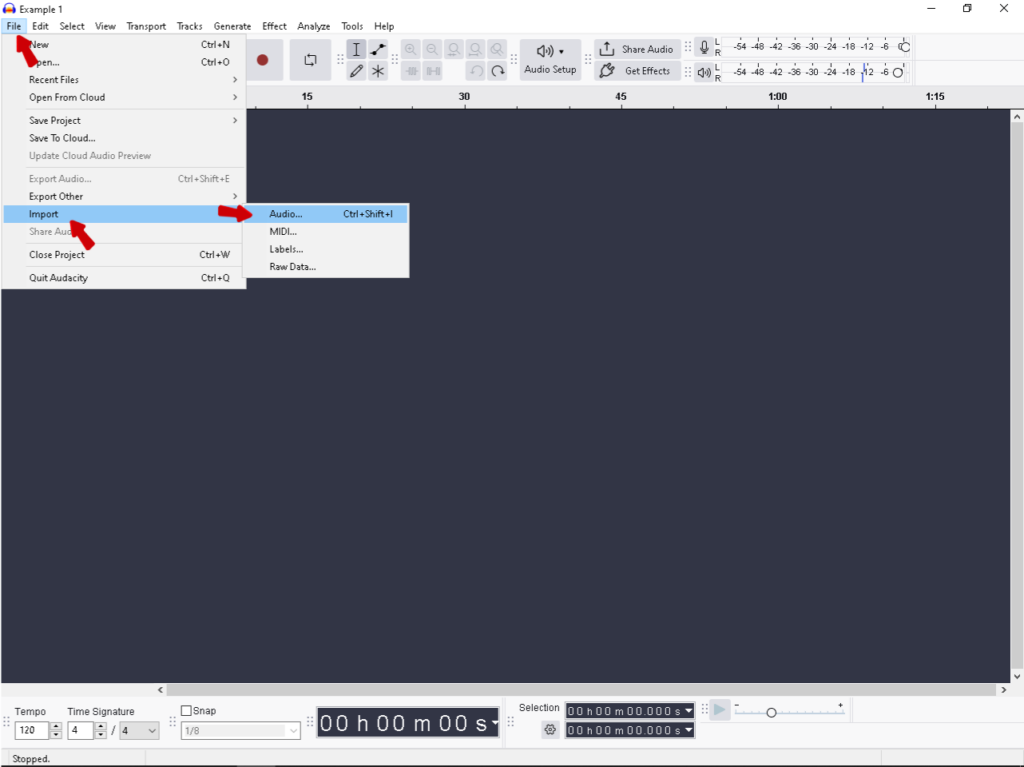- Alternative: Go to File > Import > Audio.