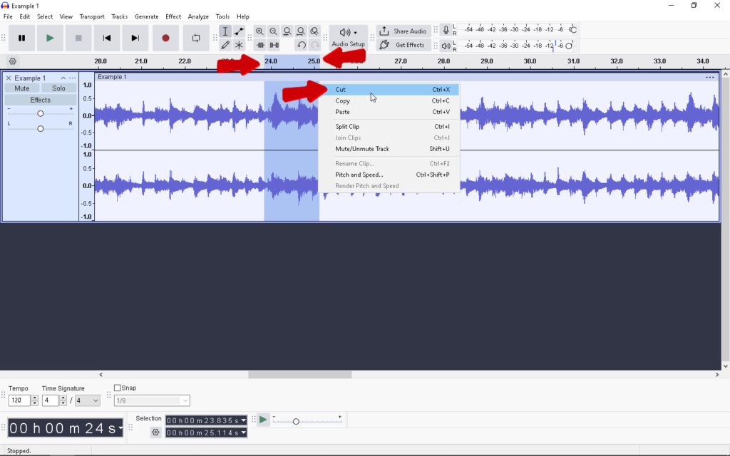 - Cut (Ctrl+X / Cmd+X): Removes the selected audio and saves it to your clipboard. Use this if you want to move a segment to a different location.