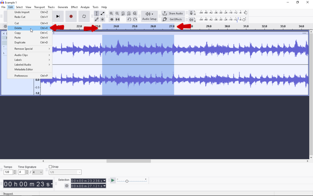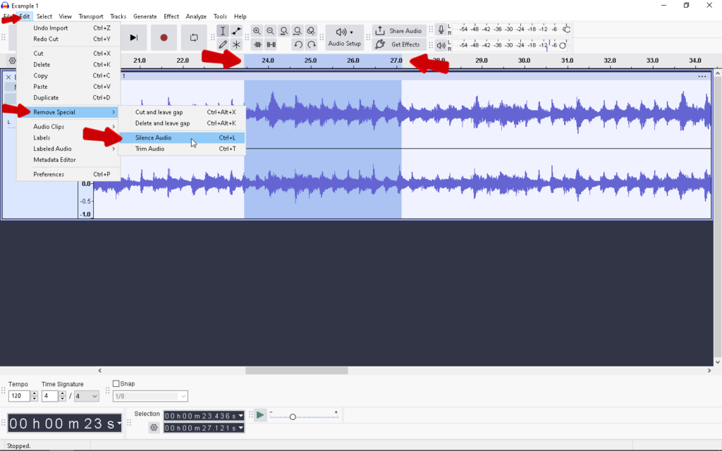 - Highlight this silent section with the Selection Tool.