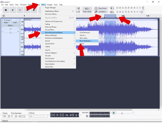- Navigate to Effect > Noise Reduction.