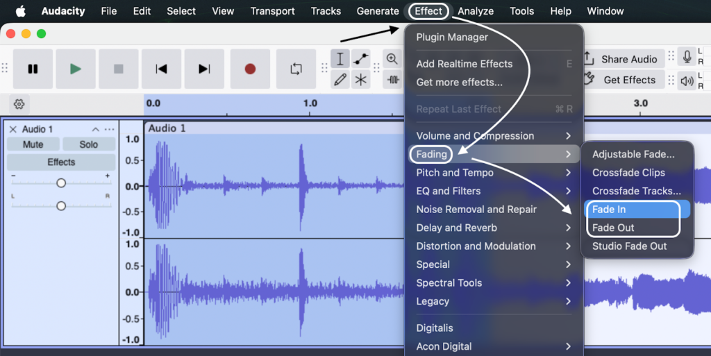 Learning how to apply fade out and fade in effects in Audacity is the quickest way to fix this. Mastering these transitions allows you to control the listener’s experience: