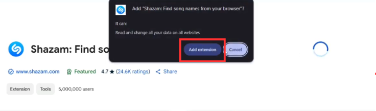 - After Shazam has been added, make sure that it is enabled from the extension settings.