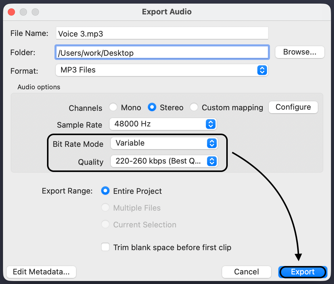 - Select Your Track: Select the entire recording (Ctrl + A / Cmd + A).