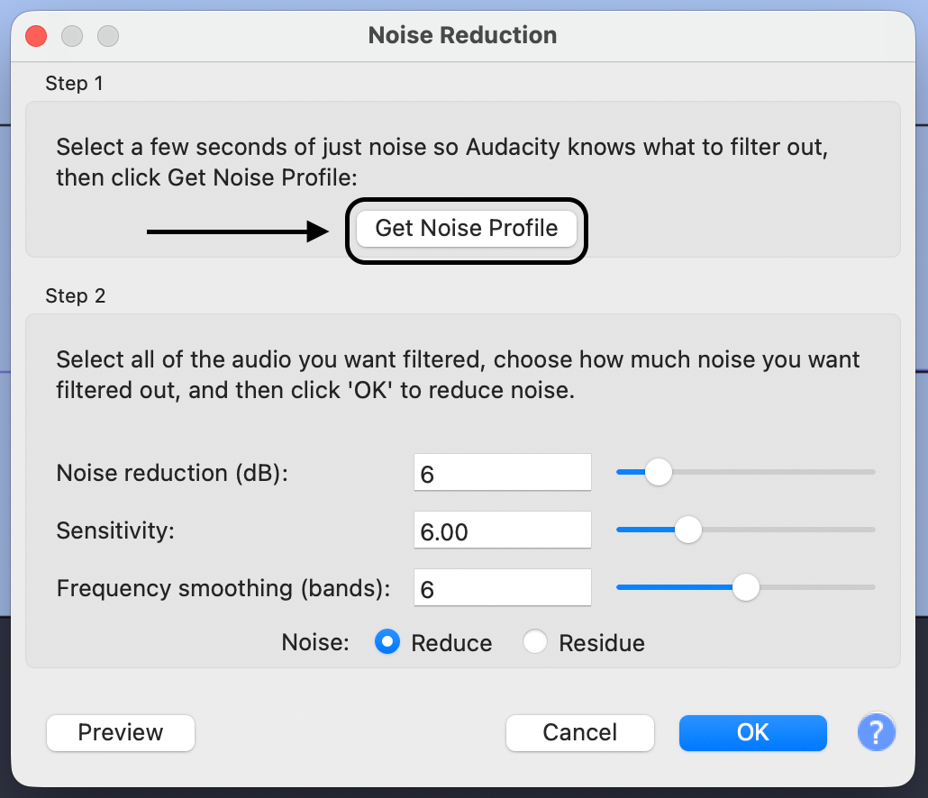 - Preview: Click Preview. If the voice sounds “muddy” (unclear) or muffled, lower the line slightly around 200Hz.