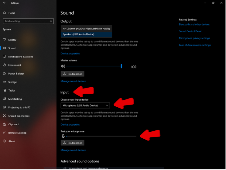 - Tip: Watch the “Test your microphone” bar while speaking. It should move. If it stays flat, check your cable.