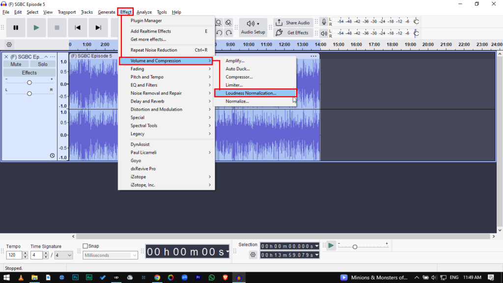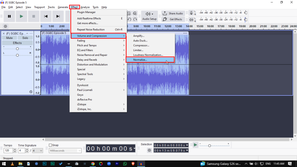 2. Go to Effect > Volume and Compression > Loudness Normalization.