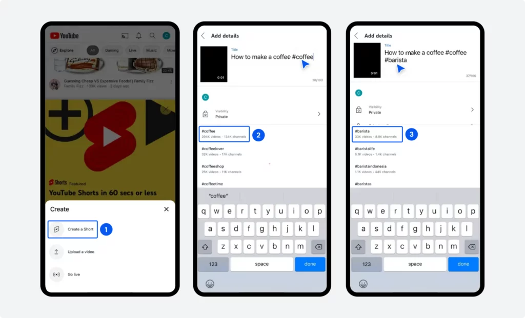 - Title — Write a title under 60 characters that includes your primary keyword naturally. YouTube indexes titles for search and displays them in Shorts search results and browse pages. They’re often the first element a potential viewer reads.