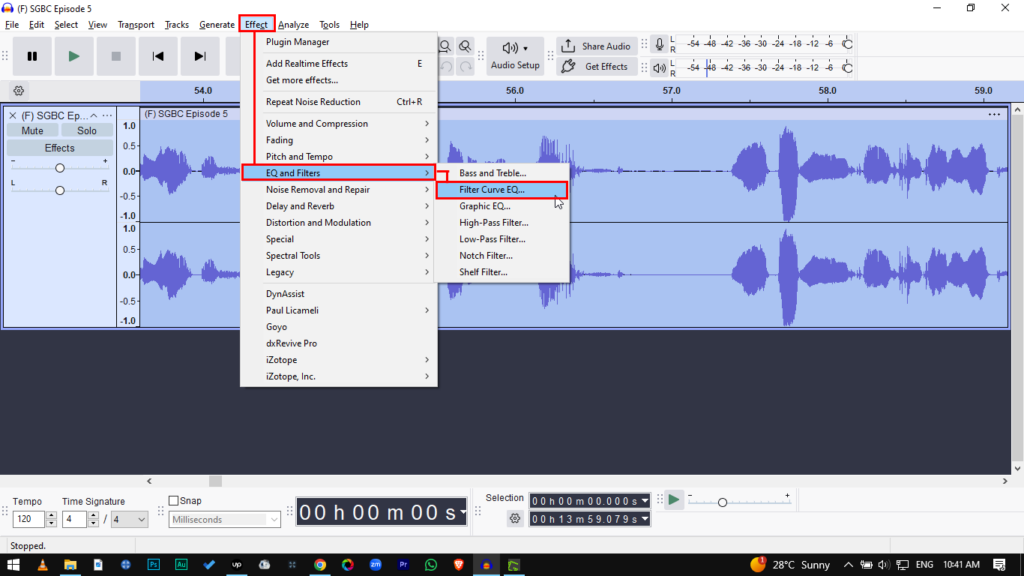 - Go to Effect > EQ and Filters > Filter Curve EQ.