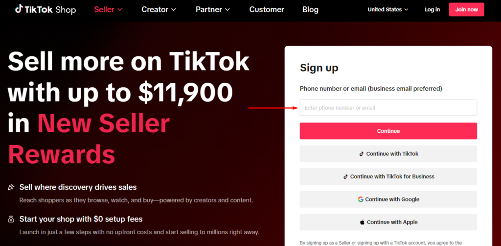 Click Sign Up / Join now and choose whether to register with your TikTok account, email, or phone number.