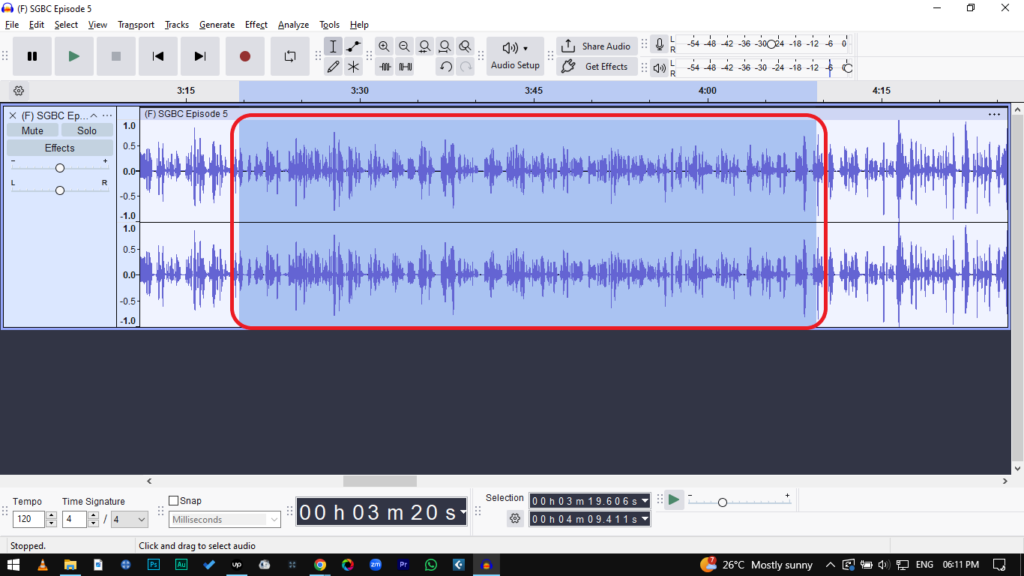 - Select Your Track: Press Ctrl + A (Windows) or Cmd + A (Mac) to select the entire recording.