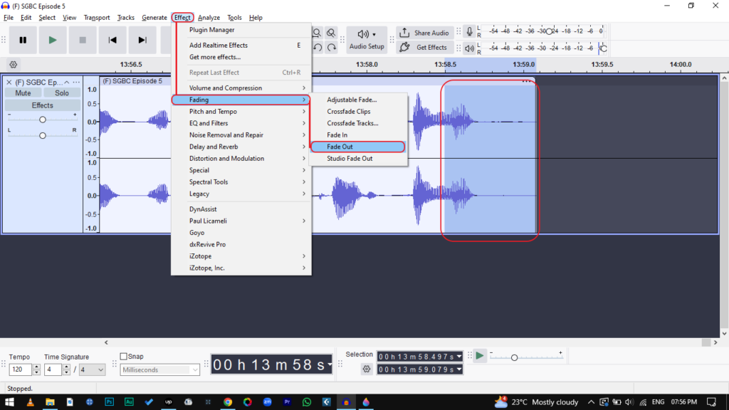 - Go to Effect > Fading > Fade Out.