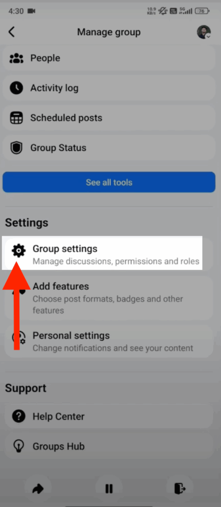Schritt 6: Scrollen Sie nach unten und wählen Sie Gruppeneinstellungen.