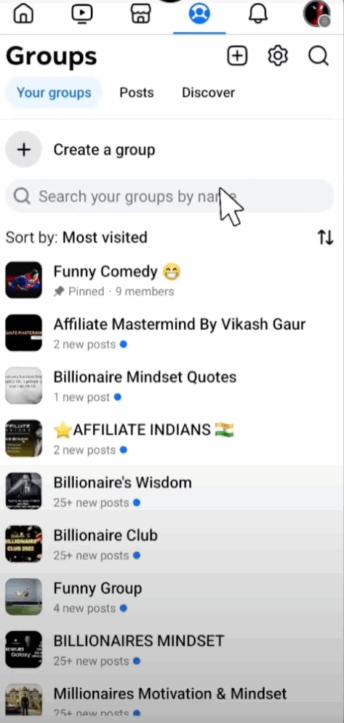Schritt 4: Tippen Sie auf ‘Ihre Gruppen’, um die Liste der Gruppen anzuzeigen, denen Sie angehören. Wählen Sie unter ‘Von Ihnen verwaltete Gruppen’ die spezifische Gruppe aus, die Sie verbergen möchten.