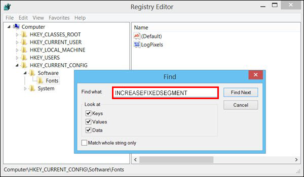 - Tapez “INCREASEFIXEDSEGMENT” et cliquez sur “Rechercher suivant.”