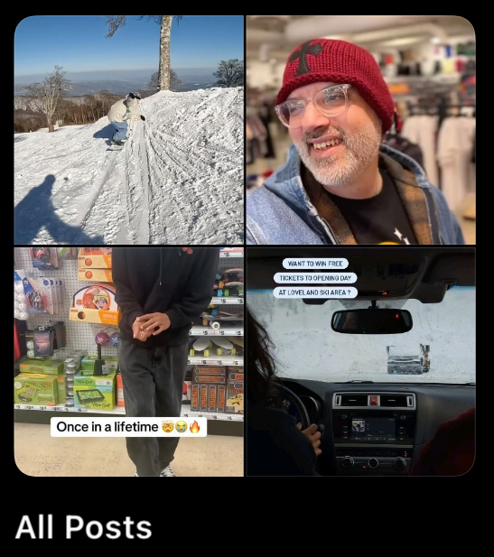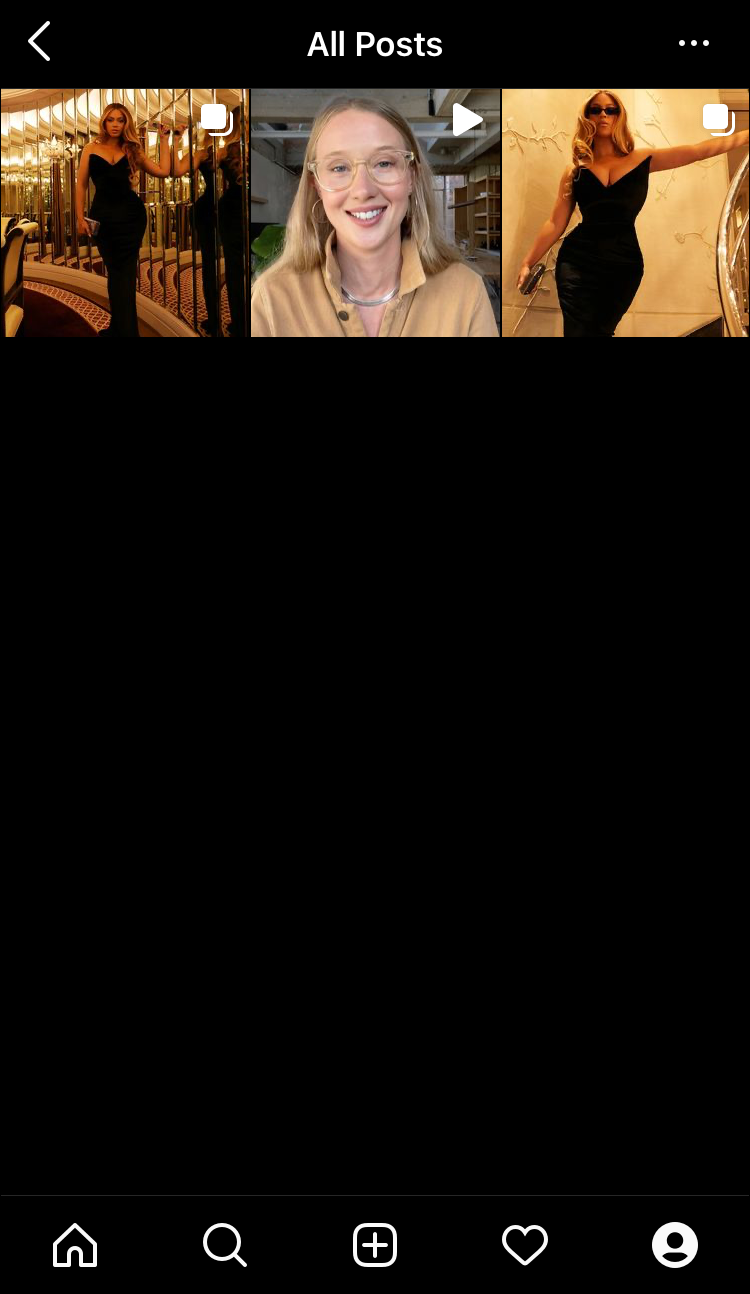 - Sélectionnez des miniatures avec l’“icône Reels” pour regarder les Reels passés. Vous pouvez également sélectionner des miniatures avec l’“icône multipage” pour visionner des posts passés contenant plusieurs images et/ou vidéos.