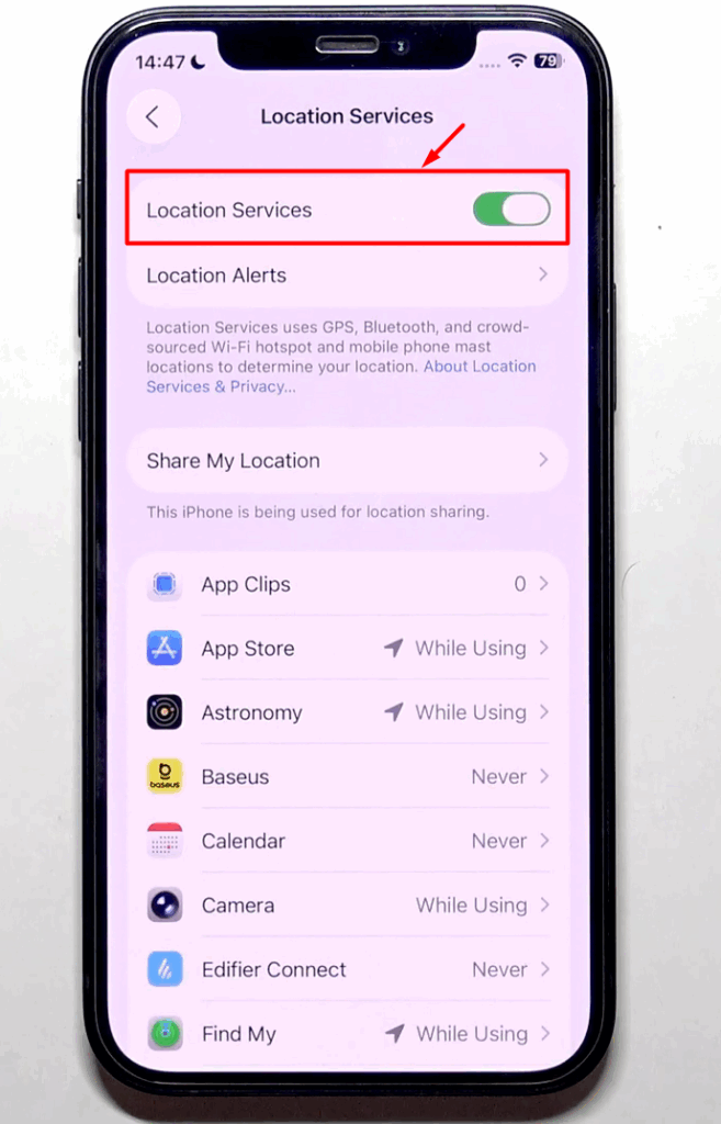 iPhoneは、要求時に位置情報サービスが有効になっている場合にのみ、リアルタイムの位置情報更新を提供できます。そのため、iPhoneの位置情報が1時間前と表示されている場合、試すべき明らかなことは、以下の手順で位置情報サービスを無効にして再有効化することです: